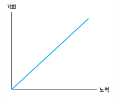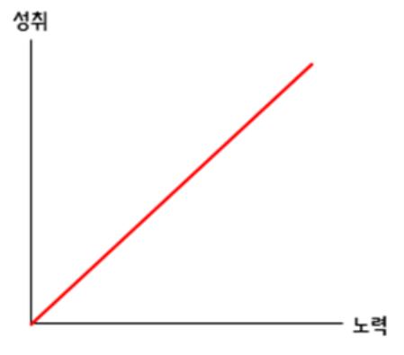 나는 여태껏 노력과 성과의 관계를 일차함수로 단순화해 생각하며 살아왔다. x축은 노력의 양, y축은 성과의 정도를 나타내는 이 그래프는 노력의 누적이 곧 성과로 이어진다는 것을 암시한다. 매일 노력하면 결국 좋은 성과를 얻을 수 있다는 믿음으로 이 그래프를 맹신하며 지냈다. 하지만 시간이 지날수록, 그리고 더 복잡한 현실에 부딪힐수록 이 믿음이 틀렸다는 사실을 깨닫게 되었다.